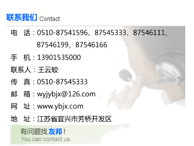 聯(lián)系地址:江蘇省宜興市芳橋開發(fā)區(qū) 郵編:214214
